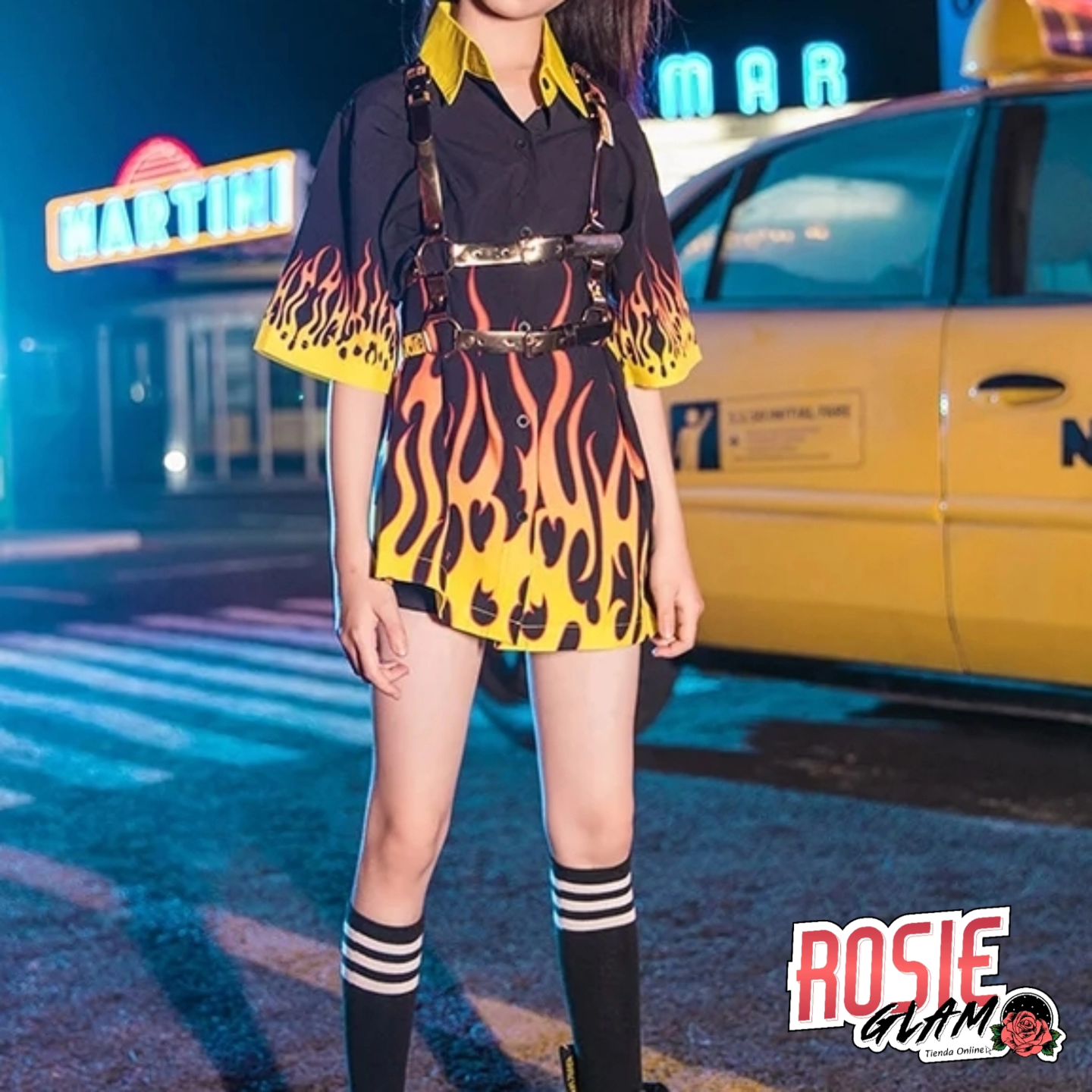 La Camisa Flame Queen de Rosieglam es una explosión de actitud, ideal para quienes aman destacar con un look desafiante y atrevido. Su vibrante diseño de llamas en degradé amarillo-naranja sobre negro transforma cualquier outfit en una declaración de poder y estilo. Inspirada en el streetstyle de las grandes capitales de la moda alternativa, esta camisa fusiona lo edgy con lo chic para lograr un resultado visualmente impactante.