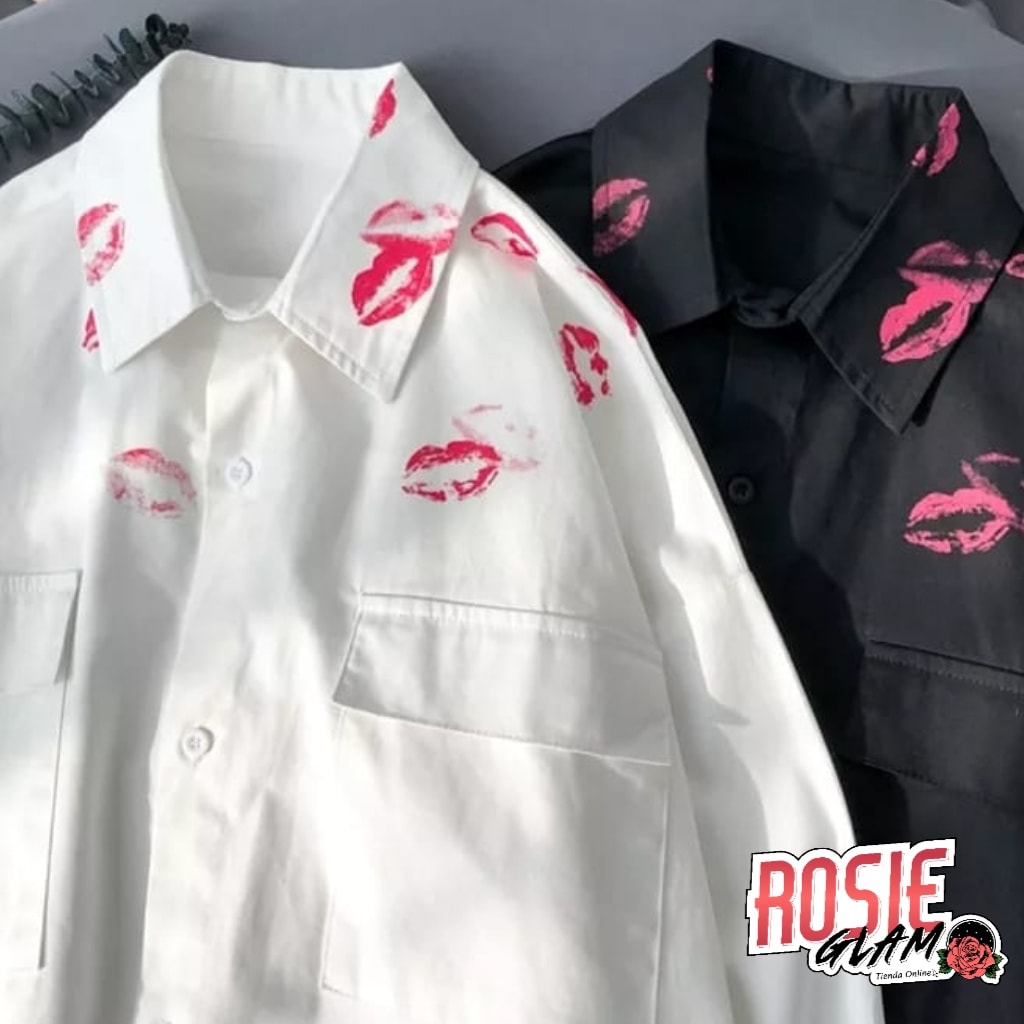 Dale un giro atrevido a tu estilo con la Camisa Kiss Attack de Rosieglam, una prenda que mezcla sensualidad, irreverencia y tendencia. Su estampado de besos rojos dispersos sobre fondo blanco o negro es ideal para quienes aman expresarse sin filtros. Esta camisa no solo llama la atención, también se convierte en una declaración de personalidad y poder.