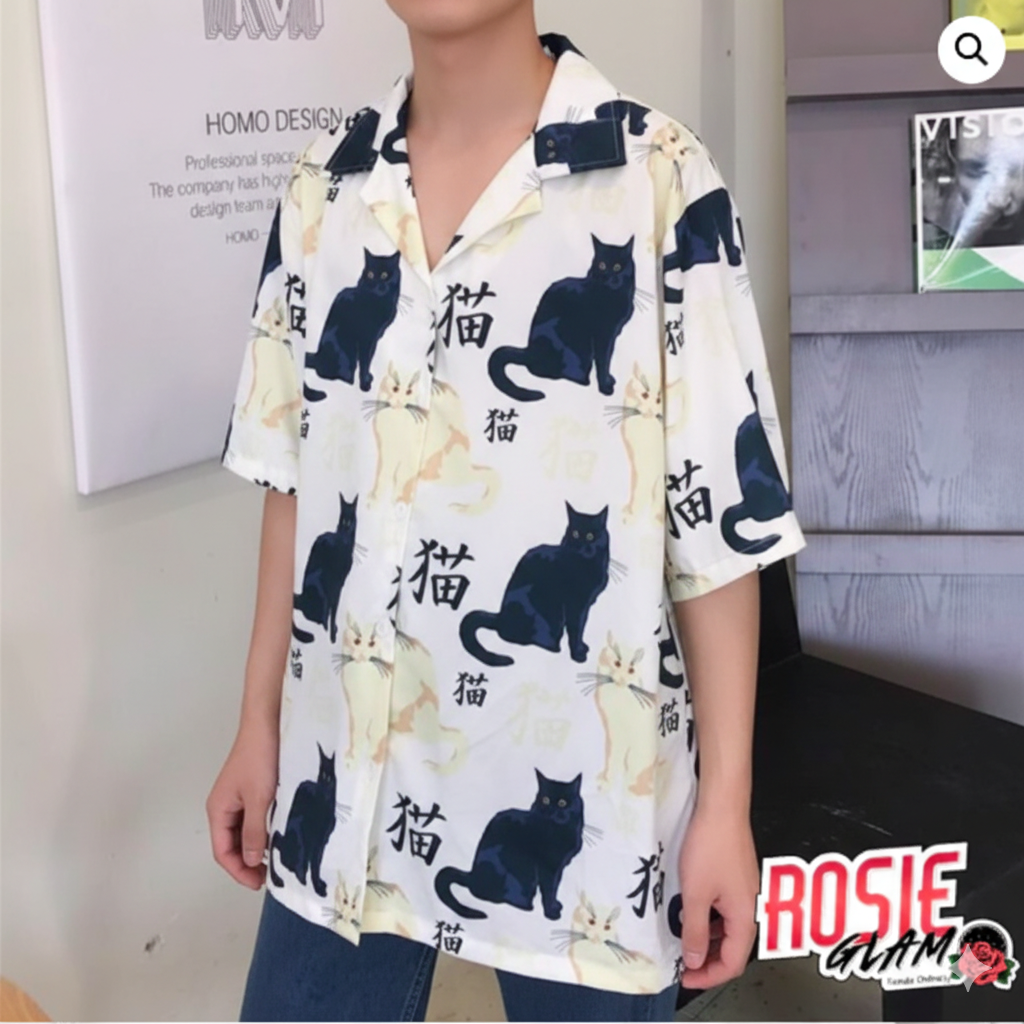 Estética Streetwear Oriental: El concepto de los Lucky Cats aporta un toque lúdico y simbólico, elevando una camisa casual a una pieza de diseño con estética aesthetic y urbana.