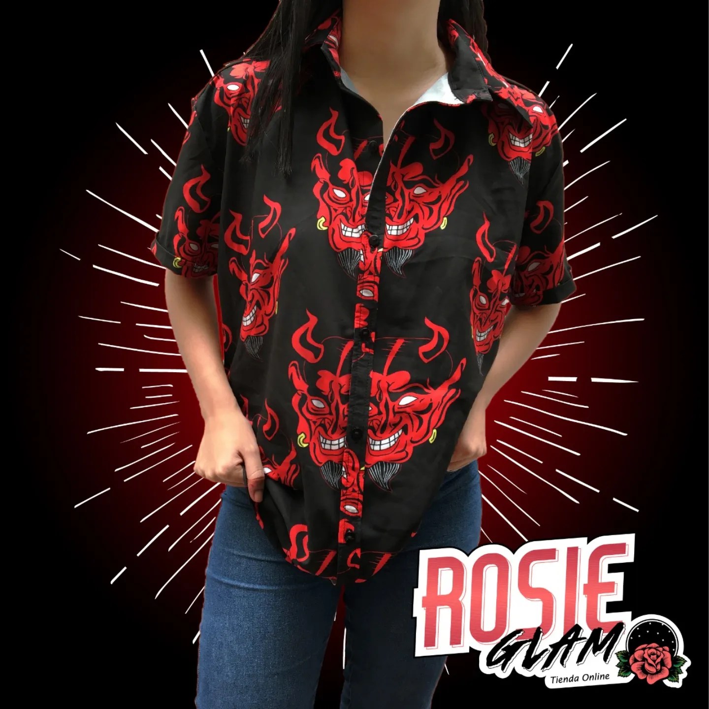 Inspirada en la simbología Oni y la cultura urbana, esta camisa es ideal para quienes buscan expresión auténtica, energía visual y un estilo alternativo sin concesiones.