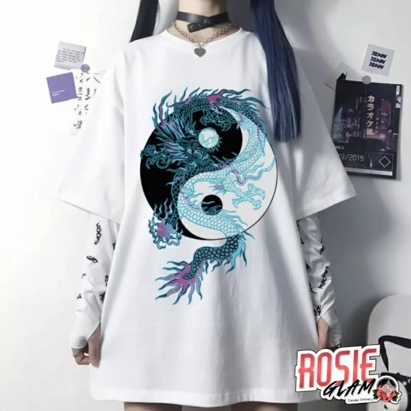 Estilo Diferenciador: A diferencia de las camisetas gráficas comunes, la combinación del Yin Yang con el arte del dragón la convierte en una prenda especial para quienes siguen tendencias como el Harajuku style o la moda coreana.