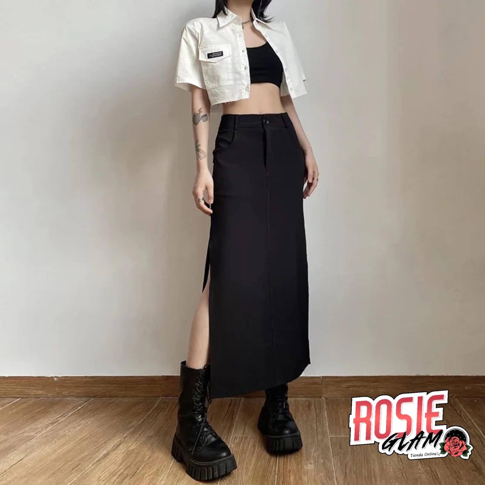En primer lugar, la Falda Negra Abertura Lateral de RosieGlam es la pieza definitiva para quienes buscan un estilo que navega entre la fuerza del streetwear industrial y la sofisticación del minimalismo grunge. Efectivamente, con su diseño limpio y su atrevida abertura lateral, esta prenda ofrece un aire moderno y empoderado que nunca pasa de moda. Por consiguiente, diseñada para ser la base de tus mejores outfits, es la falda ideal para expresar tu personalidad con autenticidad y una elegancia urbana inigualable.