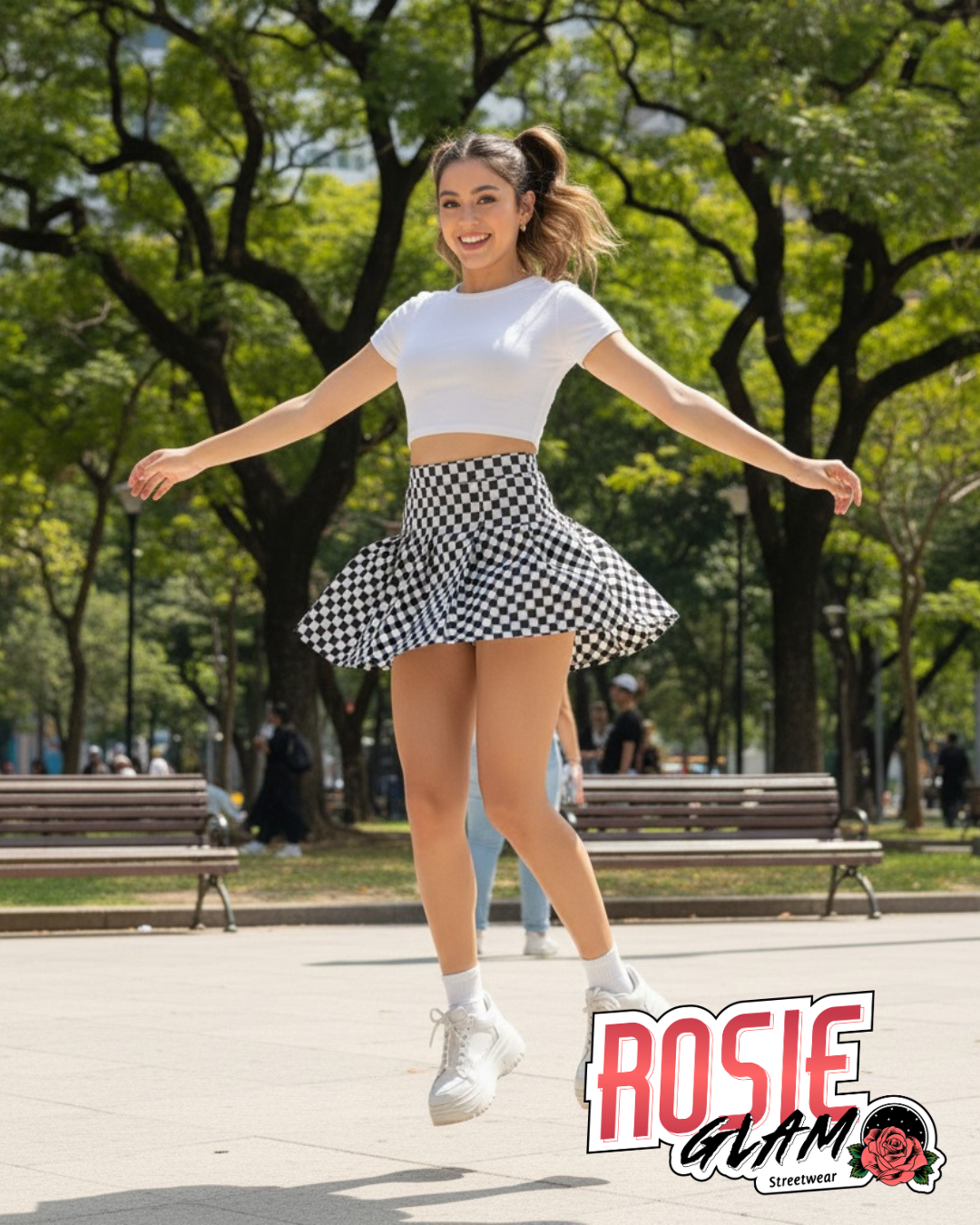 • Versatilidad Ilimitada: Combínala con una blusa básica para un look casual, o con un top ajustado para una salida por la noche. La Falda Plisada Checkerboard es tu pieza comodín para crear atuendos únicos y llenos de personalidad.