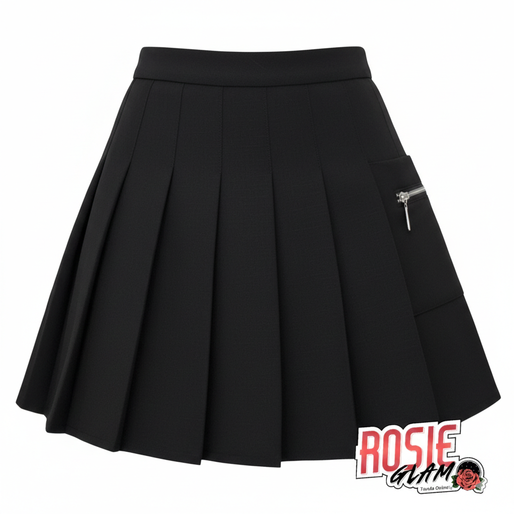 En primer lugar, la Falda Plisada Negra con Bolsillo Lateral de RosieGlam es la pieza definitiva para quienes buscan un estilo que navega entre la fuerza de la tendencia grunge y la funcionalidad del streetwear moderno. Efectivamente, con su diseño de tablas clásicas y el toque práctico de un bolsillo lateral funcional, esta prenda ofrece un aire urbano y audaz que nunca pasa de moda. Por consiguiente, diseñada para ser la protagonista de tu outfit, es la falda ideal para expresar tu personalidad con autenticidad y seguridad.