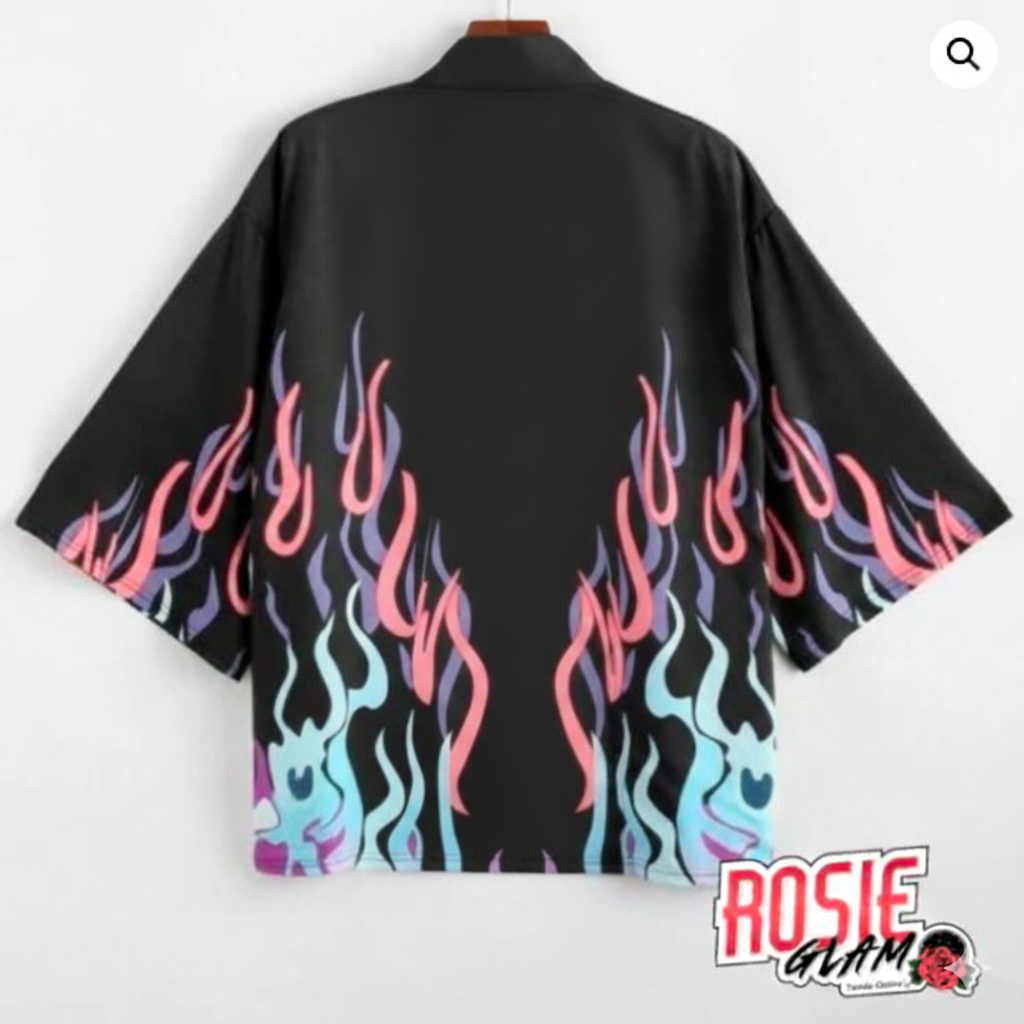 El Kimono Flama Infernal de Rosieglam es la pieza definitiva para quienes buscan un estilo que navega entre lo místico y lo intensamente audaz. Con su vibrante diseño de flamas en movimiento, esta prenda captura la esencia del streetwear más rebelde y la estética grunge-chic, ofreciendo un aire cargado de energía que nunca pasa de moda. Diseñada como una pieza unisex, es el complemento ideal para hombres y mujeres que desean expresar su personalidad con autenticidad y una actitud arrolladora.